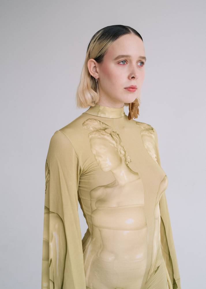 Alva is 171 cm tall and is wearing size S.
